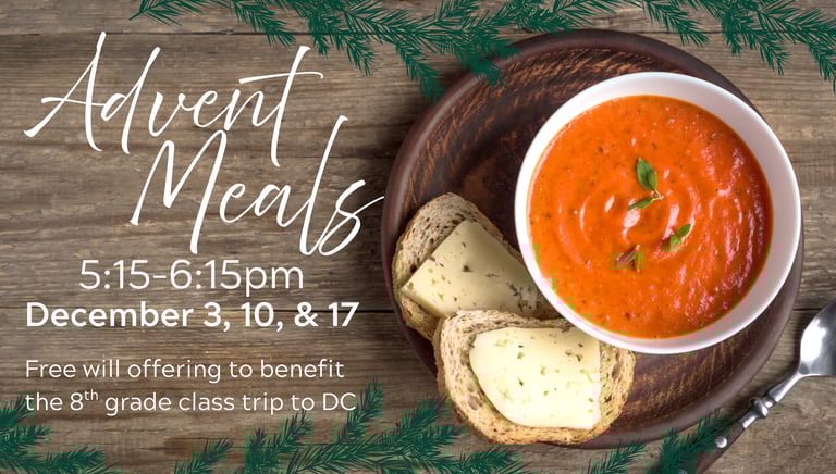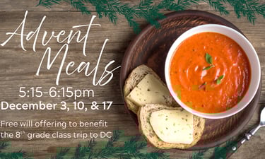 Wednesdays December 3, 10, & 17 we will offer dinner at 5:30pm-6:30pm in the school cafeteria